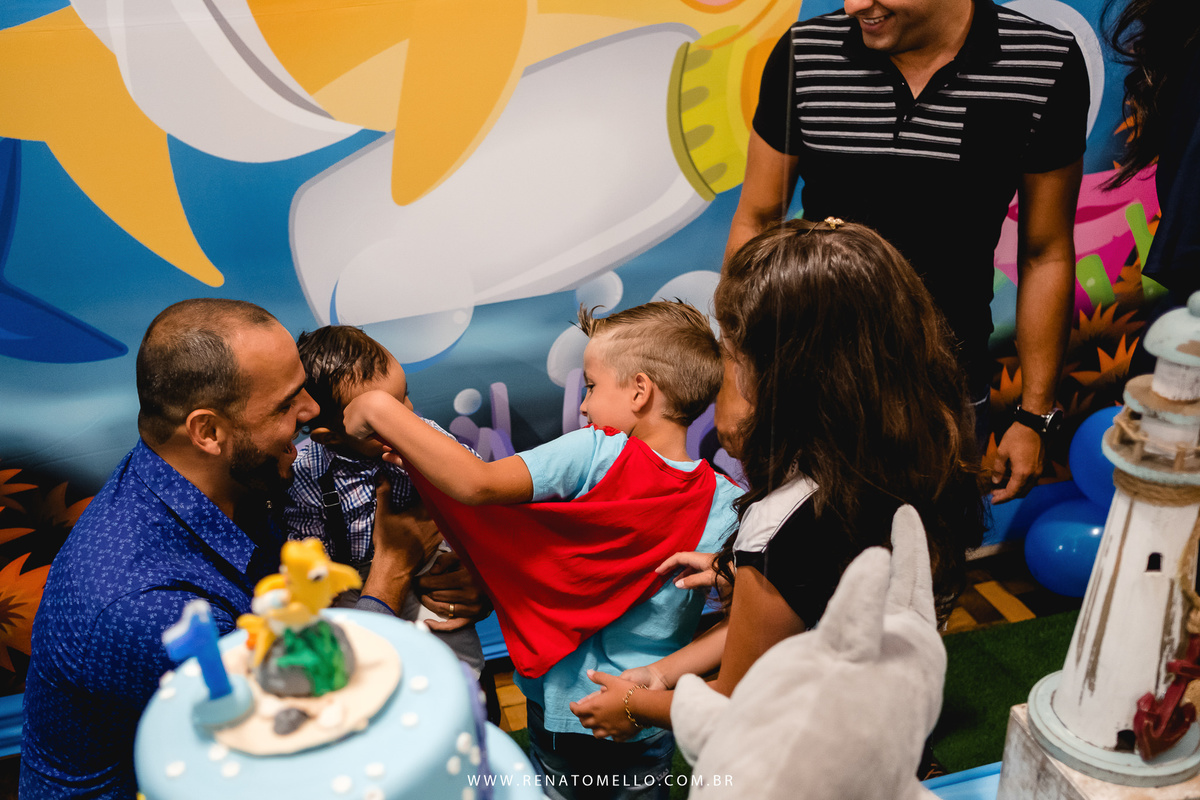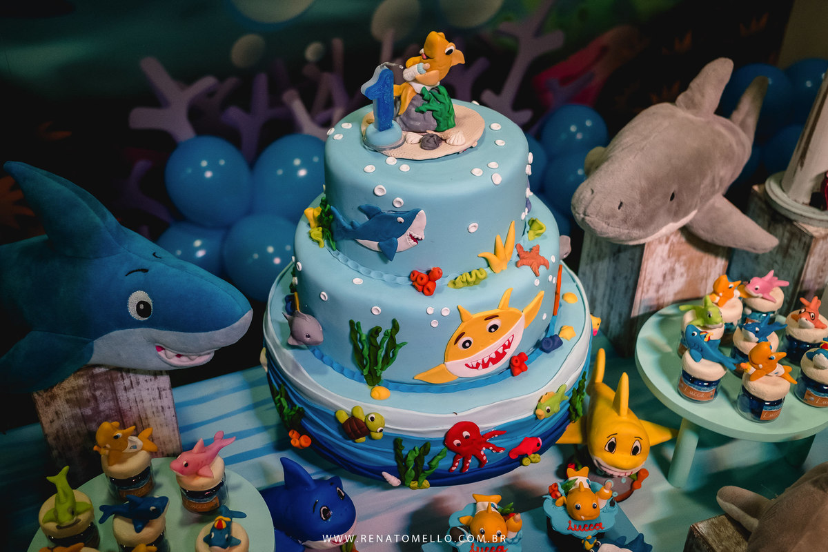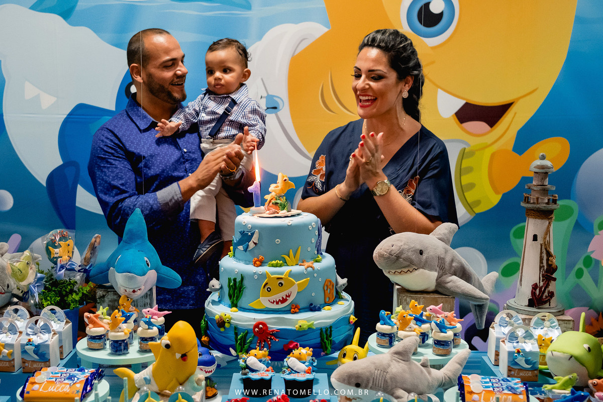 O papai gremista se enche de orgulho ao contar que a decoração da festa foi a mesma usada para o filho do jogador de futebol Geromel, do Grêmio, mas não foi só por só por isso que escolheram a decoração do fundo do mar, é que o Lucca é apaixonado pelo Baby Shark, então não poderia ser diferente.